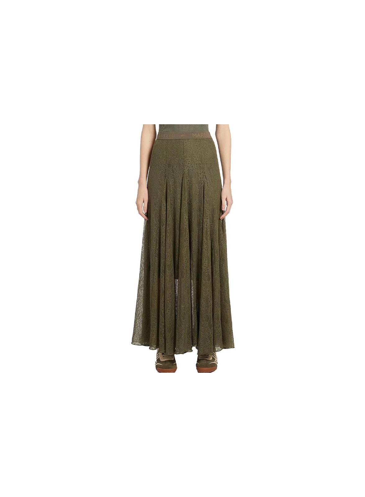 Gonna midi firmata MARELLA in pizzo svasato, elastico in vita logato. Casual chic e monocromatica. CONTATTATECI SU WHATTSAPP.