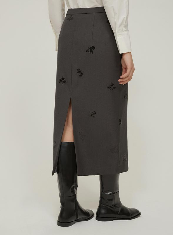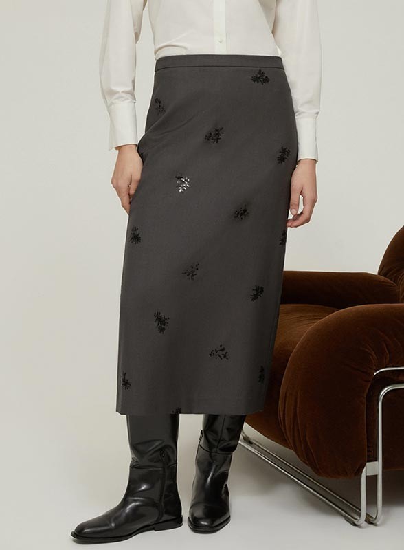 Gonna a matita firmata PENNYBLACK, elegante e luminosa grazie ai ricami tono su tono, perfetta per un look sofisticato e femminile.