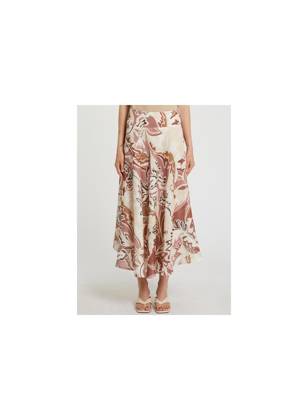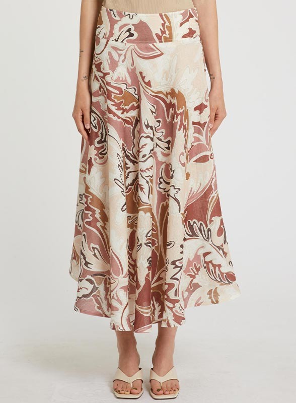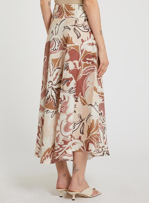 Gonna a ruota in lino leggero con macro stampa foliage, fit regolare e zip laterale, firmata MARELLA.