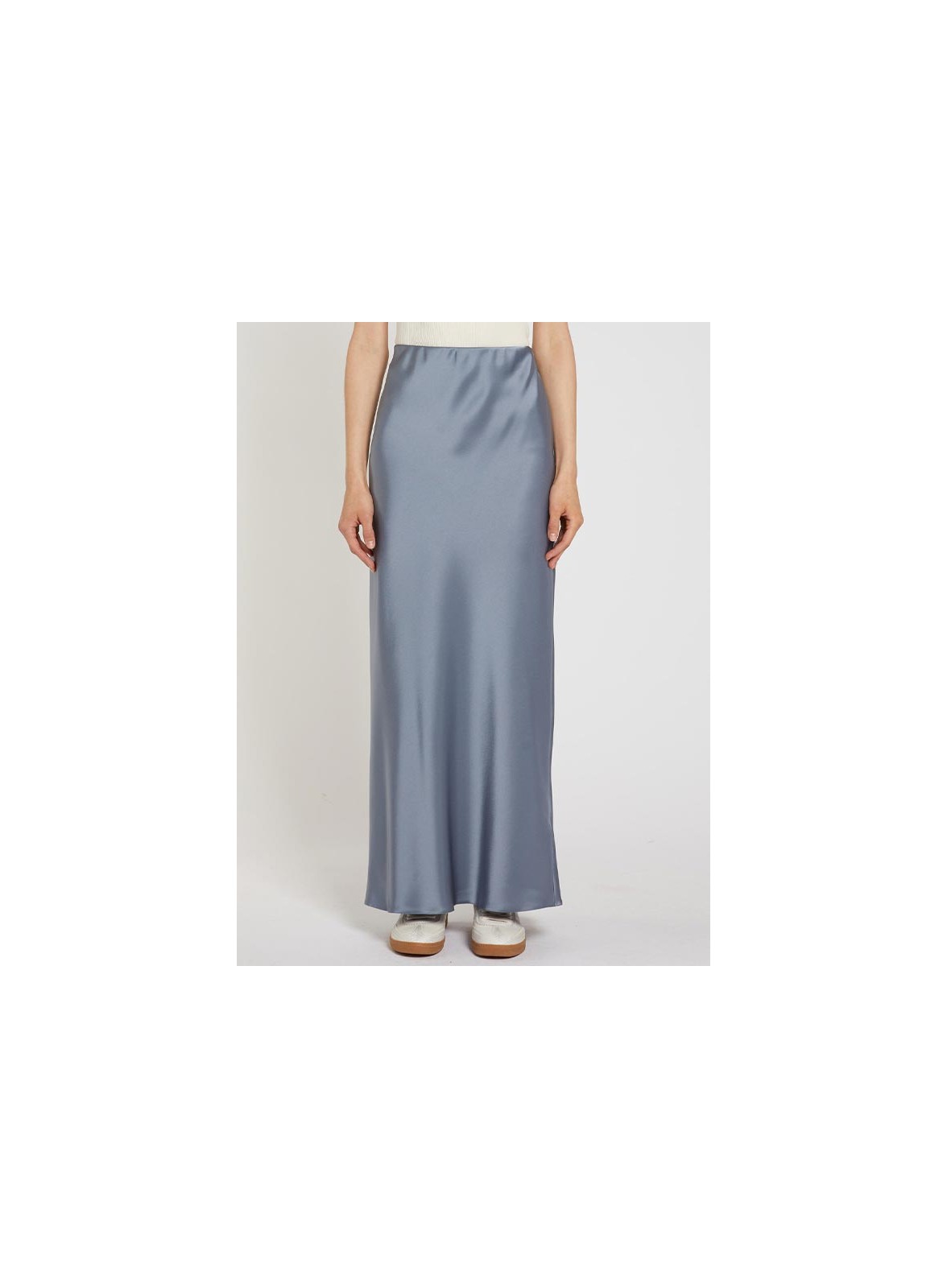 Gonna firmata MARELLA in double satin, linea aderente che valorizza la silhouette con vita elastica interna per comfort.