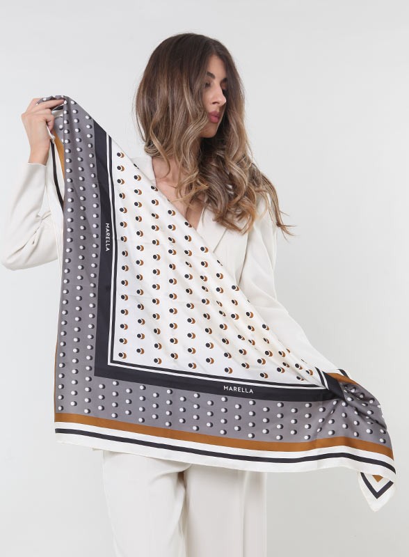 Foulard firmato Marella in seta con stampa stelle: elegante, unico e versatile. Confezione esclusiva. Scopri la nuova collezione.