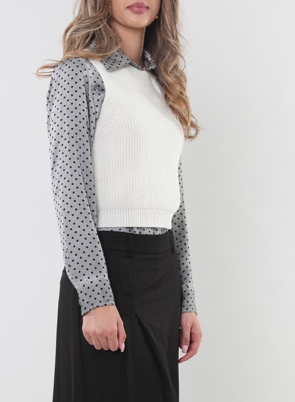 Gilet firmato Kaos a girocollo in misto lana, lavorazione a coste inglese, perfetto per l'autunno. Scopri la nuova collezione.