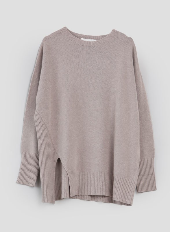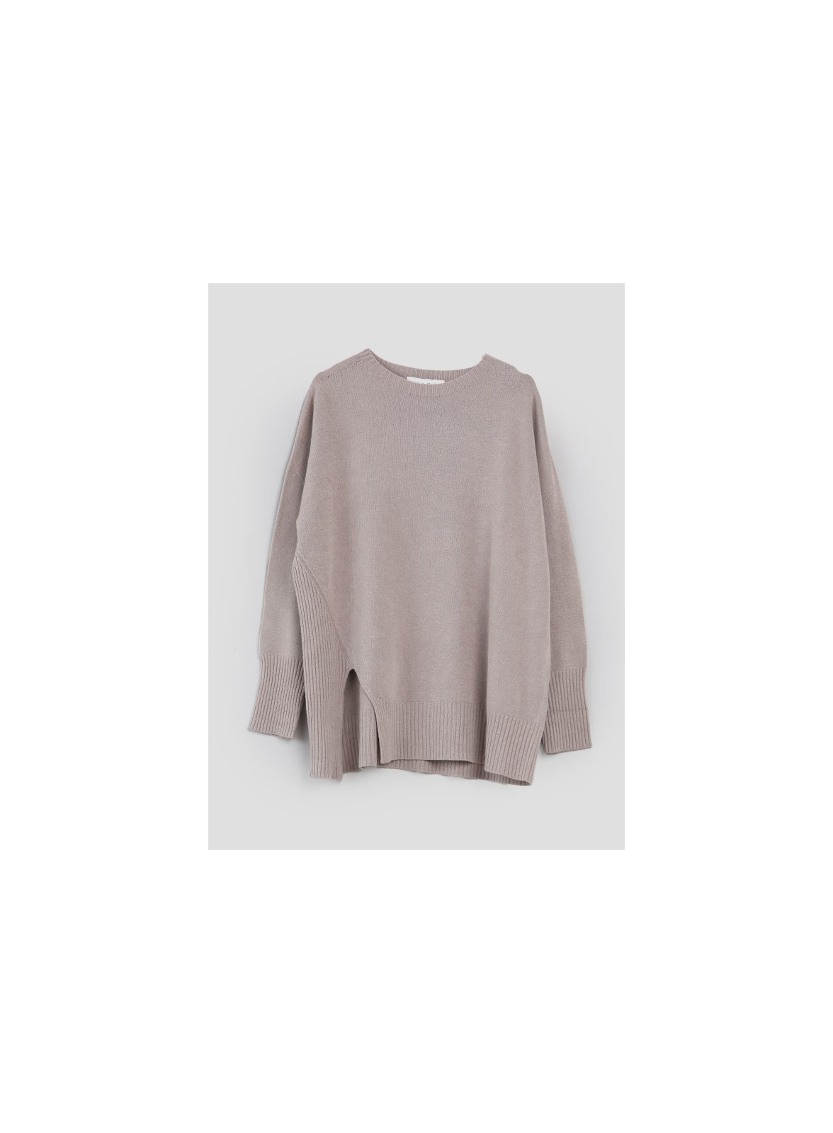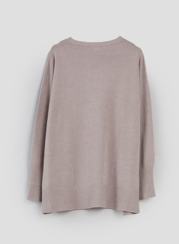 Maglia a girocollo firmata KAOS, lavorazione rasata, manica lunga con giro sceso e spacchi al fondo. Vestibilità regolare.