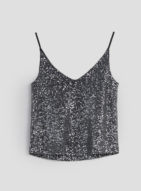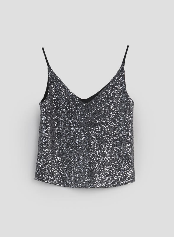 Top in jersey di paillettes firmato OTTOD'AME, spallina stretta e scollo tondo. Il capo è l'ideale per completare outfit sempre al passo con le nuove tendenze moda.