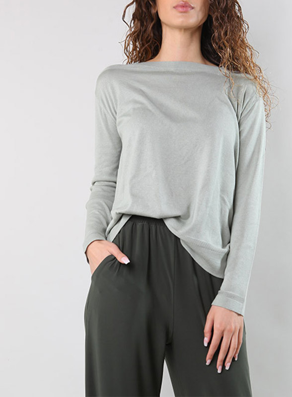 Maglia in seta e cotone lavorata a maglia rasata. Il modello girocollo presenta maniche lunghe a giro basso, polsini, fondo del capo e girocollo rifiniti a costine. La lavorazione la rende morbida e confortevole. Max Mara Leisure è la linea di abbigliamento di Max Mara che si distingue per il suo stile casual chic. Le collezioni Leisure sono caratterizzate da linee fluide e tessuti morbidi, Made in Italy.