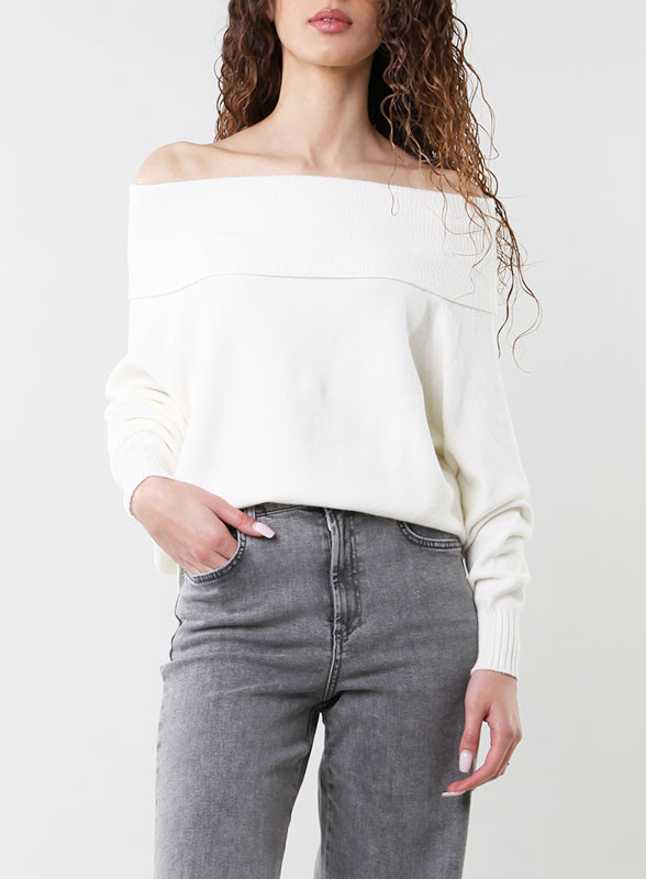Maglia a maniche lunghe firmata Kontatto: scollo shiffer, morbidissima, profili a costine, vestibilità comoda. Disponibile anche in nero.