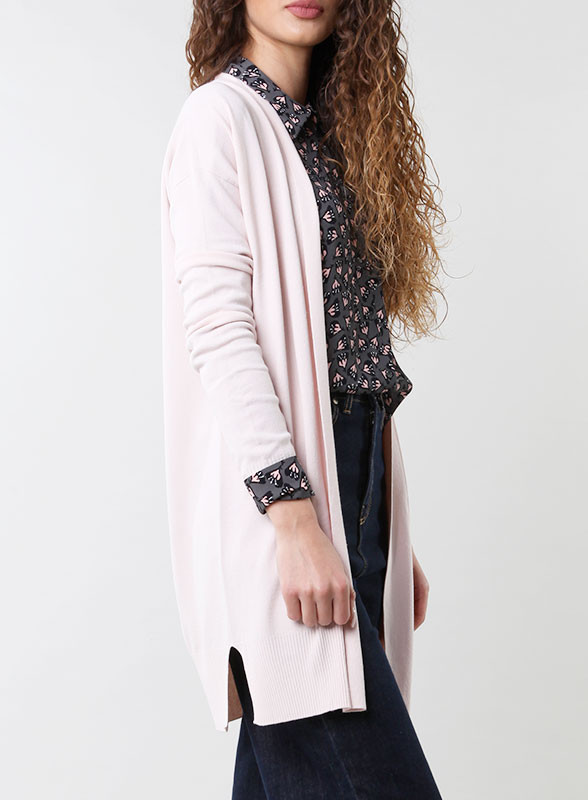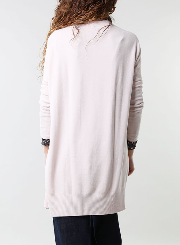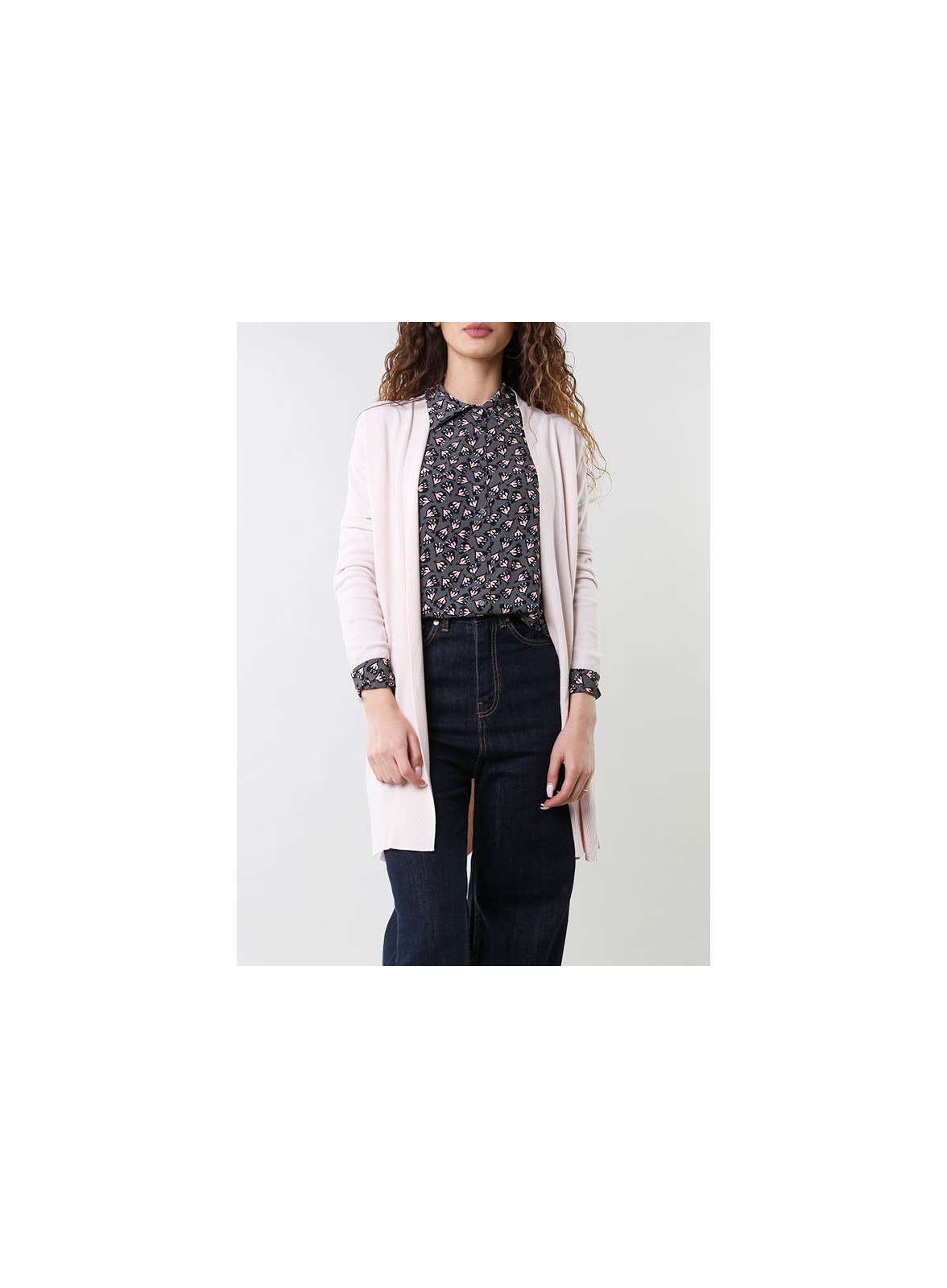 Cardigan in maglia di viscosa con motivo costine sottili su polsini e fondo firmato Kontatto.