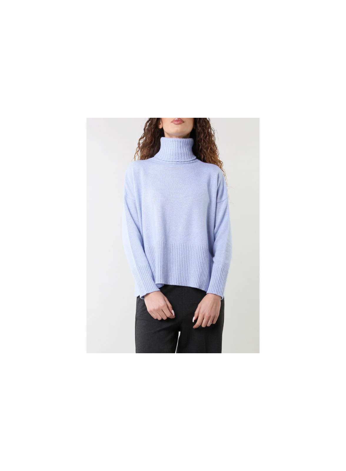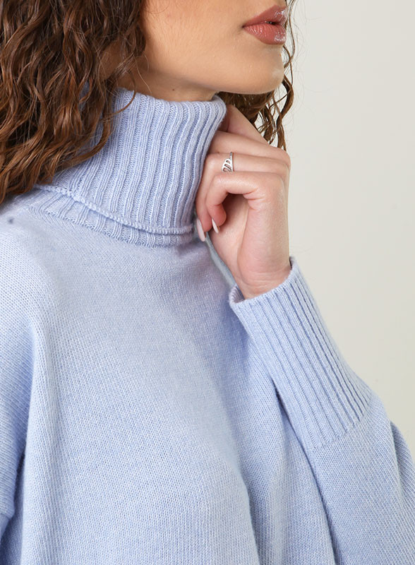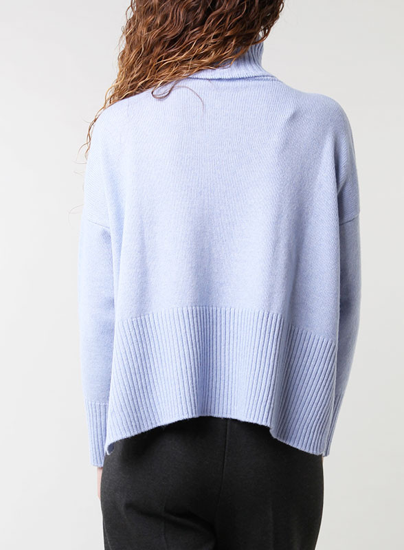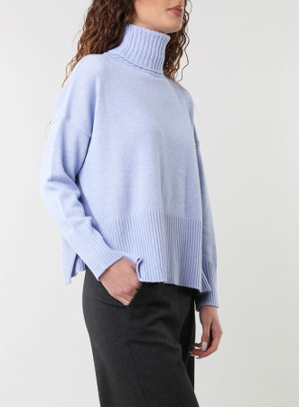 Maglia collo alto,manica lunga giro sceso,con lavorazione a costine sul fondo firmato Kontatto.