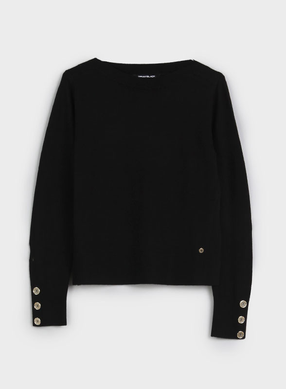 Maglia in filato sottile di pura lana. Il modello presenta scollo a barchetta, linee diritte e proporzioni che sfiorano il corpo. Per abbinamenti grafici in black & white, con tocchi di colore. Pennyblack è espressione di una moda dinamica pensata per soddisfare le esigenze della donna moderna.