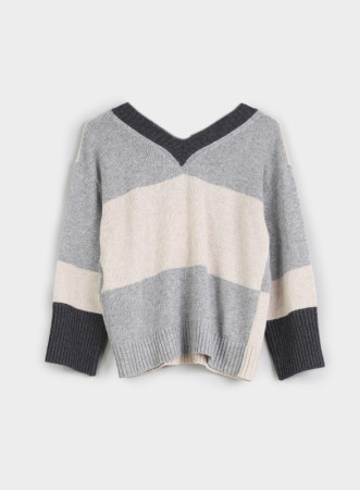 Maglia color block in misto lana, dalla linea dritta con bordi a coste. Il modello presenta scollo a V davanti e dietro, maniche lunghe con giro sceso e polsino a coste. Vestibilità regolare. Pensato per la donna moderna, l'abbigliamento firmato Marella si distingue per l'inconfondibile stile ricercato e contemporaneo, massima espressione del design italiano.
