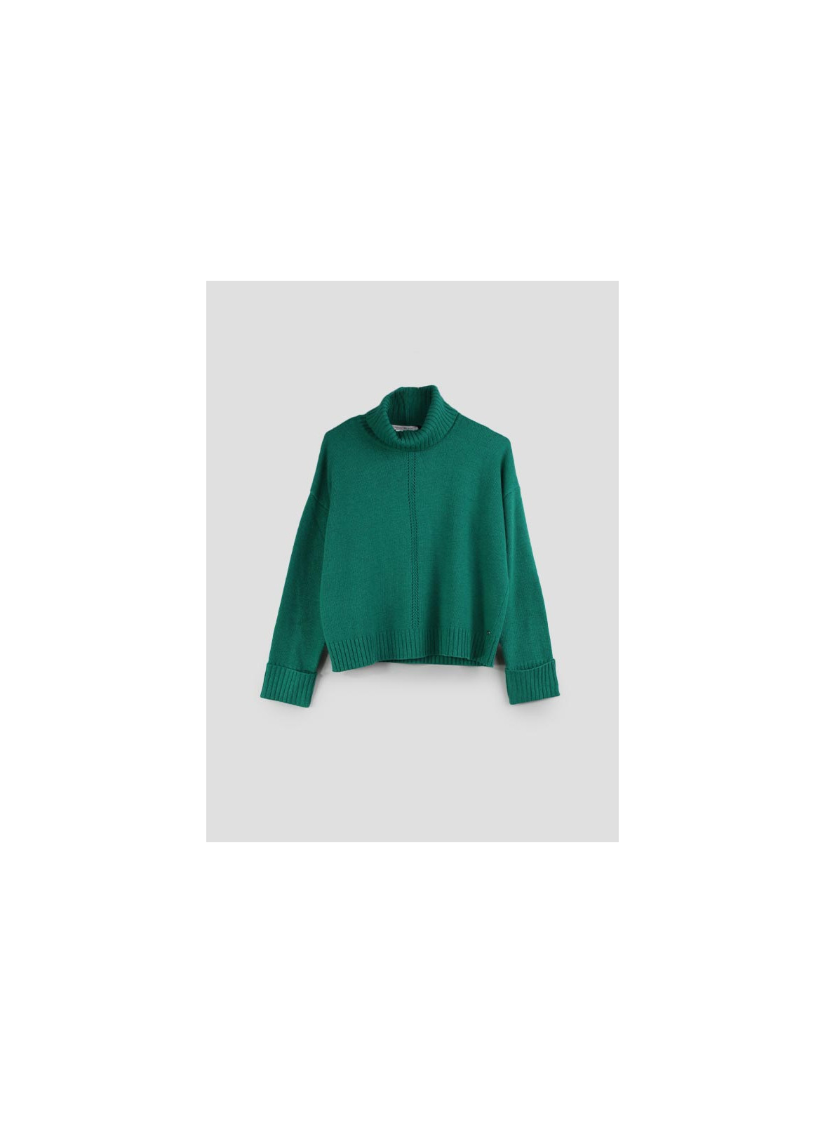 Maglia over in misto di lana e cachemire, rifinita con lavorazione a punto rasato e a punto calato. Collo dolcevita, maniche lunghe a giro basso con risvolto, linea boxy. Il motivo sul davanti caratterizza il capo. Disponibile anche nei colori panna e nero. Pennyblack è espressione di una moda dinamica pensata per soddisfare le esigenze della donna moderna.