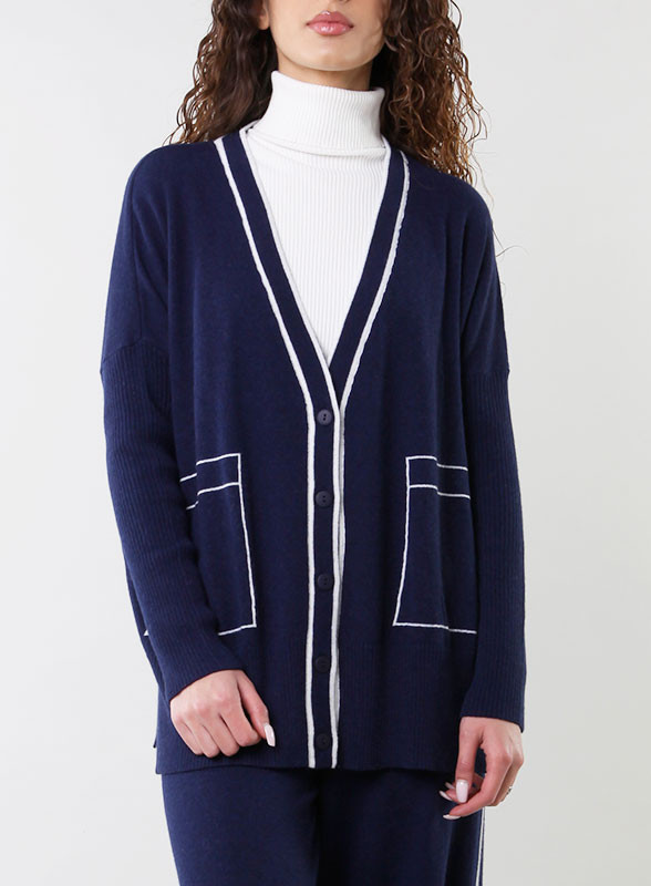 Cardigan firmato Kontatto con riga laterale e tasche applicate. Stile contemporaneo e vestibilità regolare.