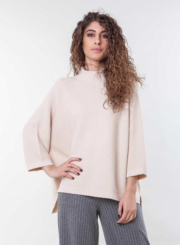 Maglia over con manica tre quarti color champagne firmata Kontatto nuova collezione FW 22/23