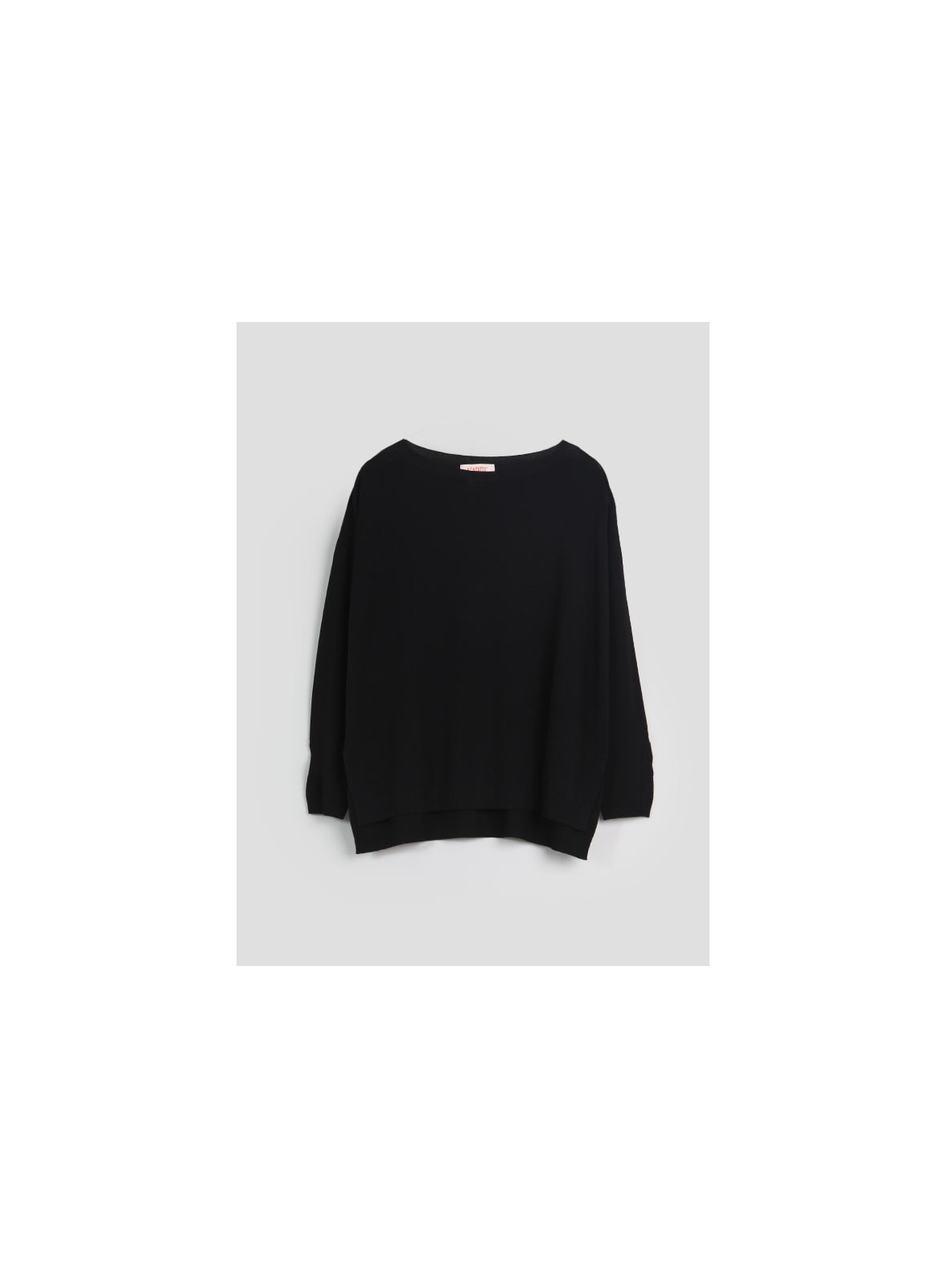 Maglia a maniche lunghe firmata Kontatto, con scollo a giro e spacchetti laterali. Morbida e stretch, perfetta per la donna moderna.