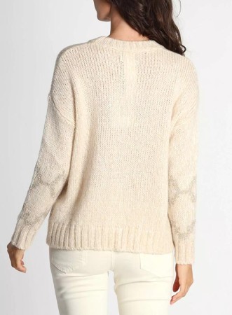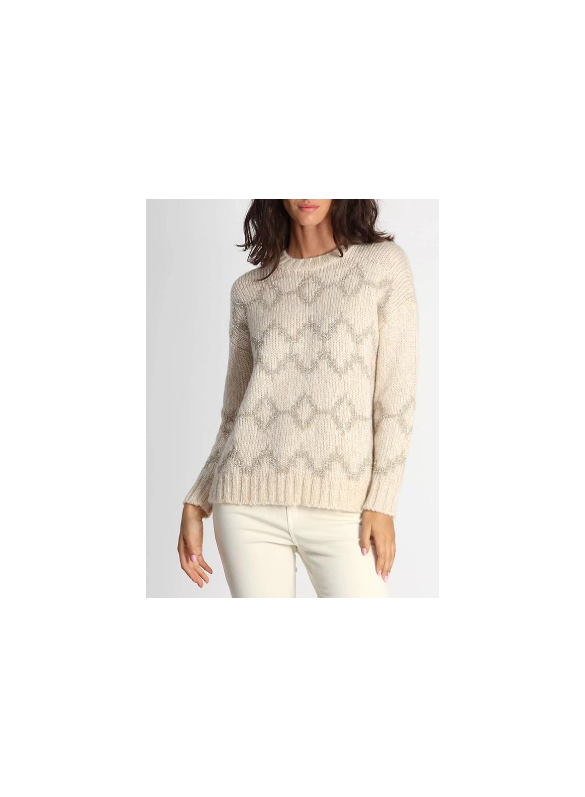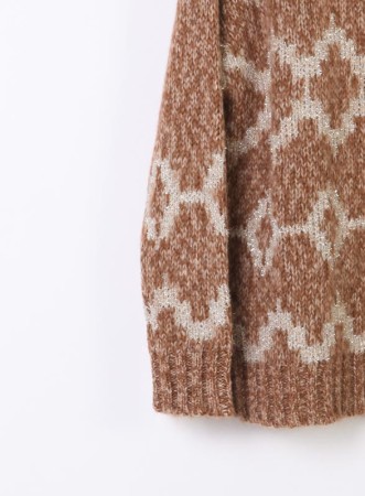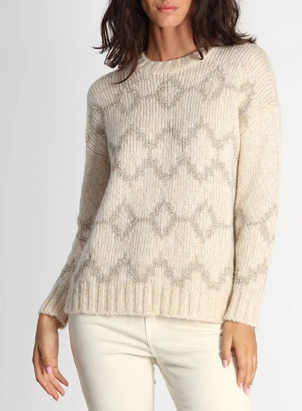 Maglia IBLUES firmata, in misto lana lurex jacquard, linea morbida con scollo tondo e maniche lunghe, fit regolare.