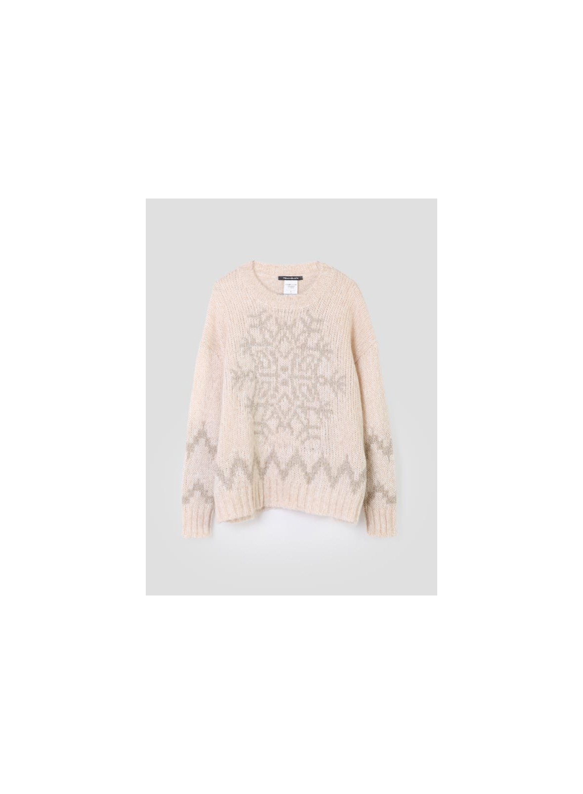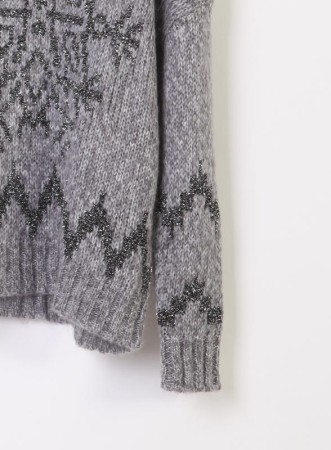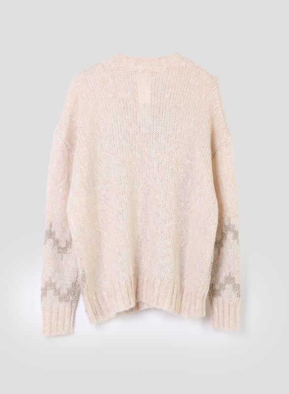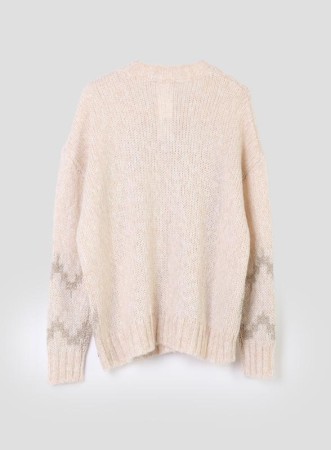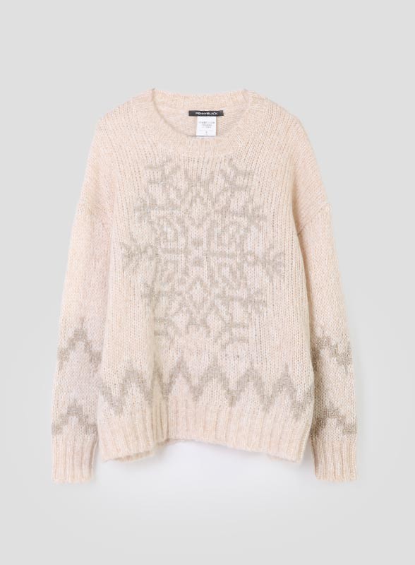 La maglia firmata PENNYBLACK è un capo elegante e versatile, realizzato in mohair con lavorazione rasata che dona una texture soffice e avvolgente. Lo scollo a giro e la manica lunga con polsino a costine conferiscono un tocco classico, mentre il filo lurex che disegna delicati motivi sul davanti aggiunge luce e raffinatezza, rendendola perfetta sia per il giorno che per la sera. La vestibilità comoda la rende adatta a diverse occasioni, mantenendo sempre uno stile curato.