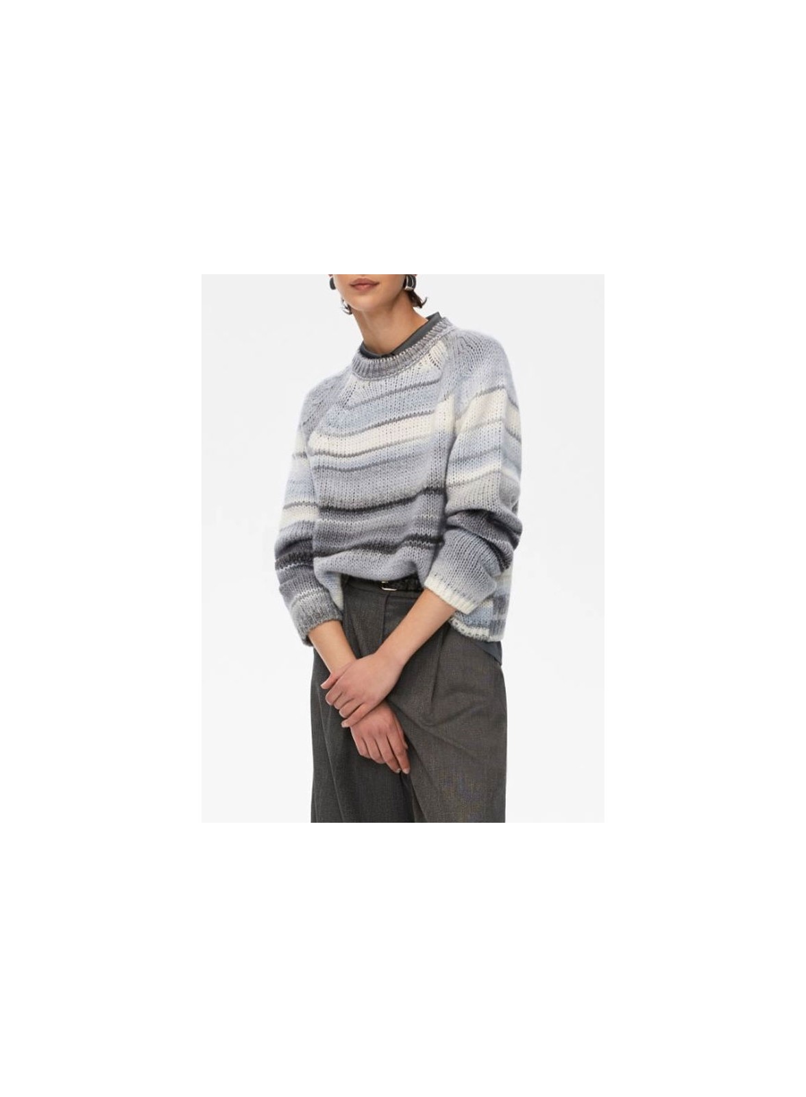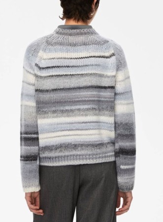 Maglia firmata IBLUES realizzata in filato misto lana stampato, caratterizzata da una linea dritta e uno scollo tondo, con maniche lunghe alla raglan e bordi lavorati a costine. Il fit regolare assicura comfort e stile senza rinunciare all’eleganza tipica del brand.