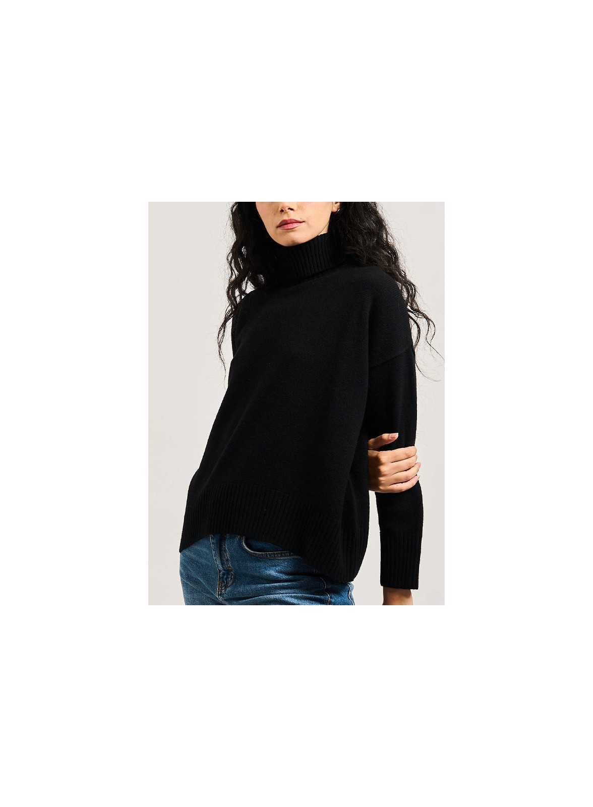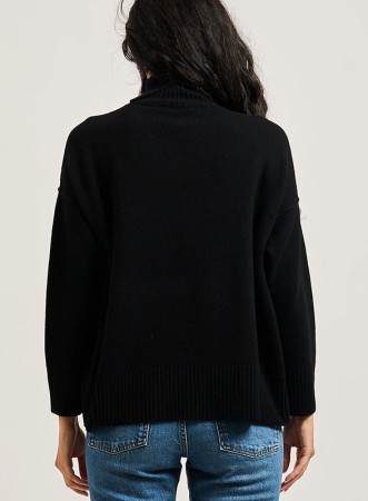 Maglia dolcevita over firmata IBLUES, realizzata in filato misto lana per un comfort superiore e una vestibilità ampia e avvolgente. Il collo alto con apertura posteriore facilita la vestibilità, mentre le maniche lunghe con spalle scese e i bordi a costina completano il design elegante e pratico.