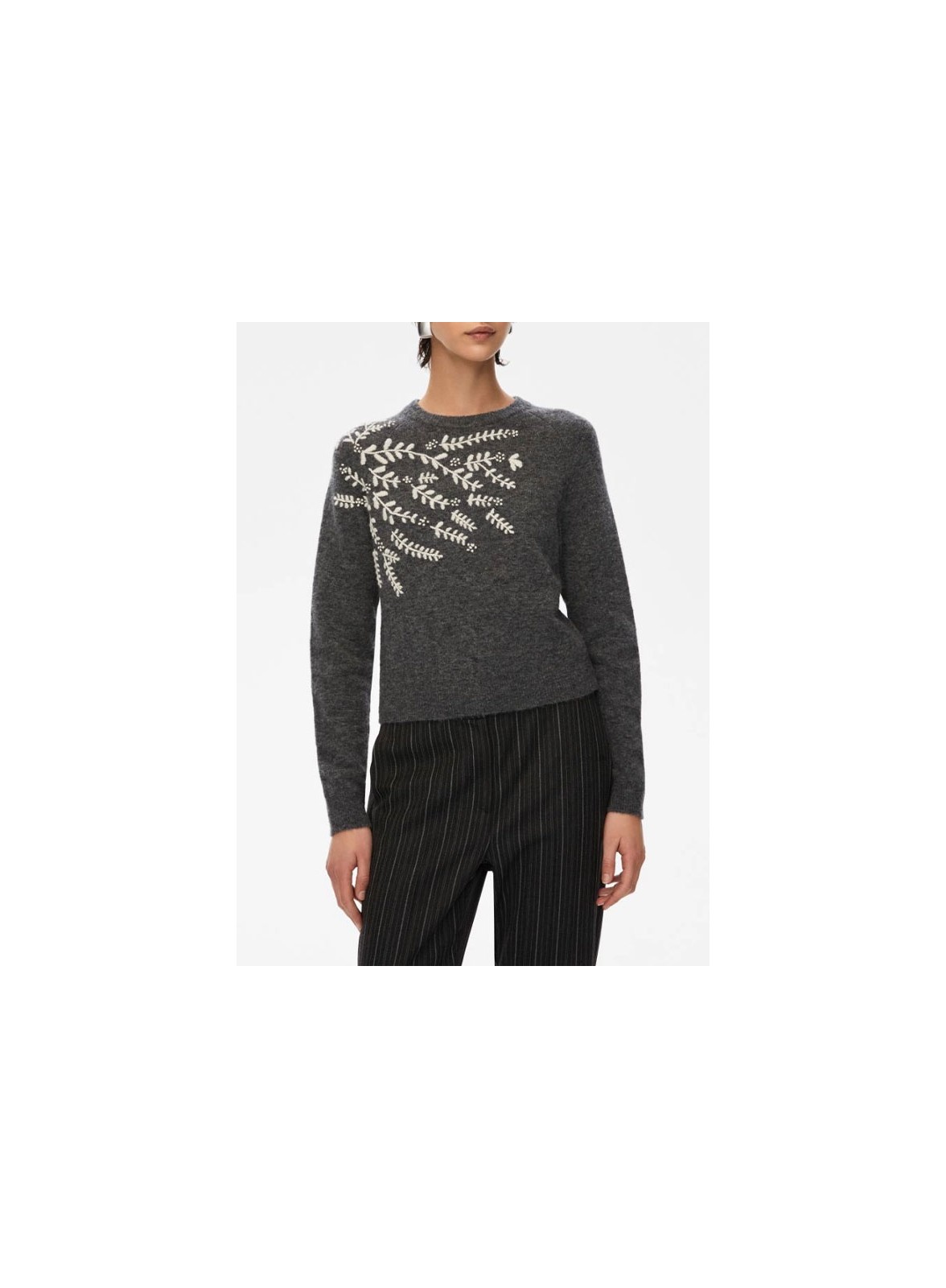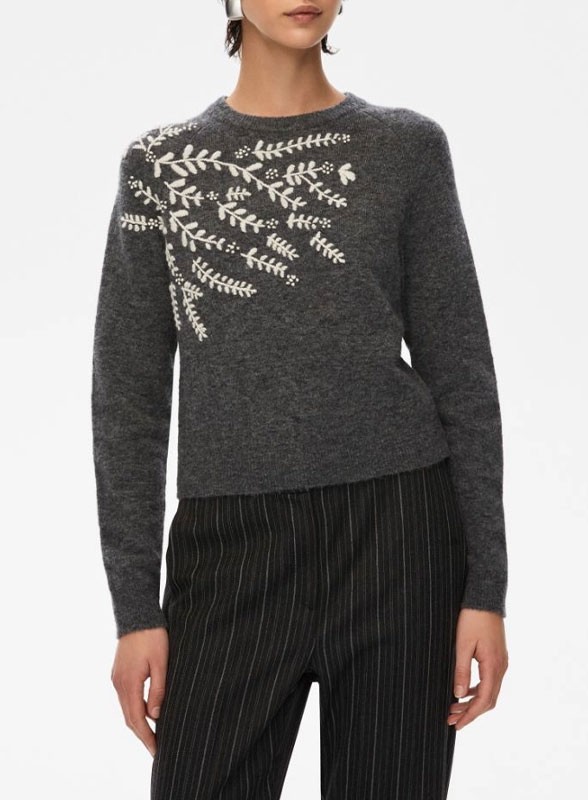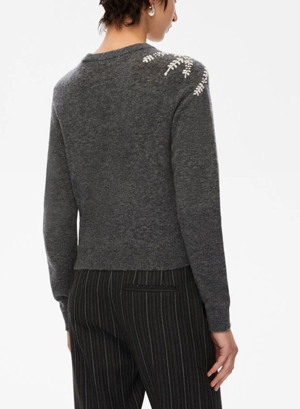 Maglia IBLUES firmata, in filato misto lana con ricami e bordi a costine, linea dritta e fit regolare. Eleganza e stile senza tempo.