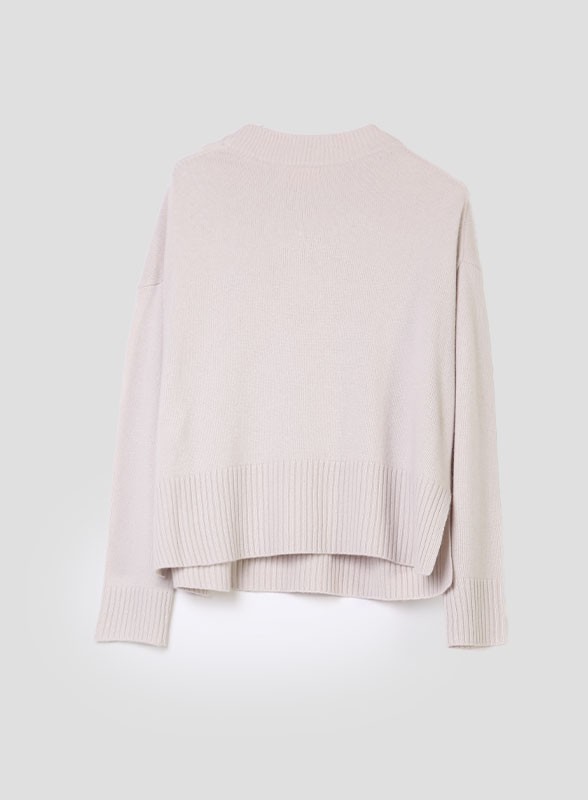 Maglia firmata IBLUES in lana, linea over con scollo tondo e maniche lunghe. Fit morbido.