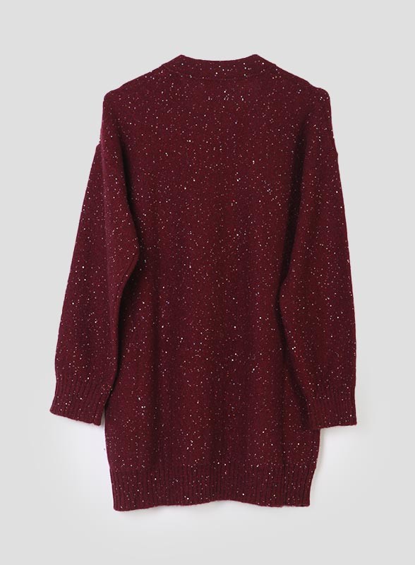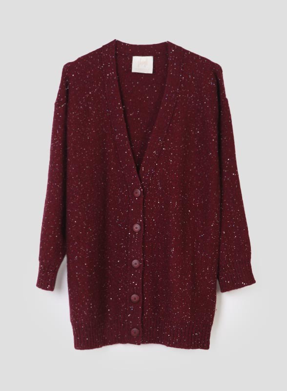 Cardigan firmato MARELLA realizzato in maglia di lana e cachemire, caratterizzato da una texture morbida e avvolgente. Il modello presenta scollo a V e chiusura con bottoni tono su tono, mentre le applicazioni in paillettes piatte donano un tocco luminoso e raffinato al capo. Le maniche lunghe con giro sceso completano il design dal gusto contemporaneo e versatile, ideale per look sia casual che ricercati.