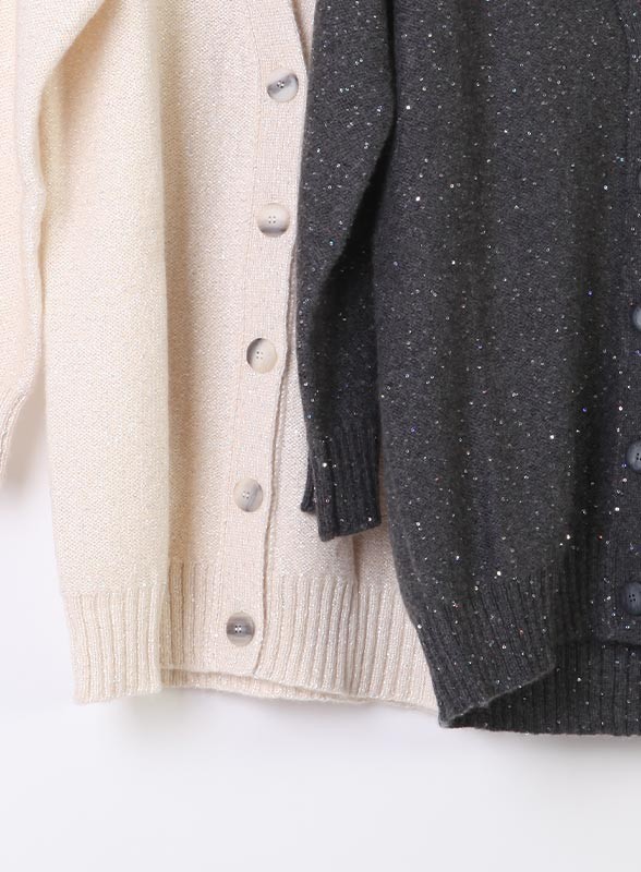 Cardigan firmato MARELLA in lana e cachemire, morbido e raffinato, con scollo a V e dettagli in paillettes, parte della collezione Monochrome.