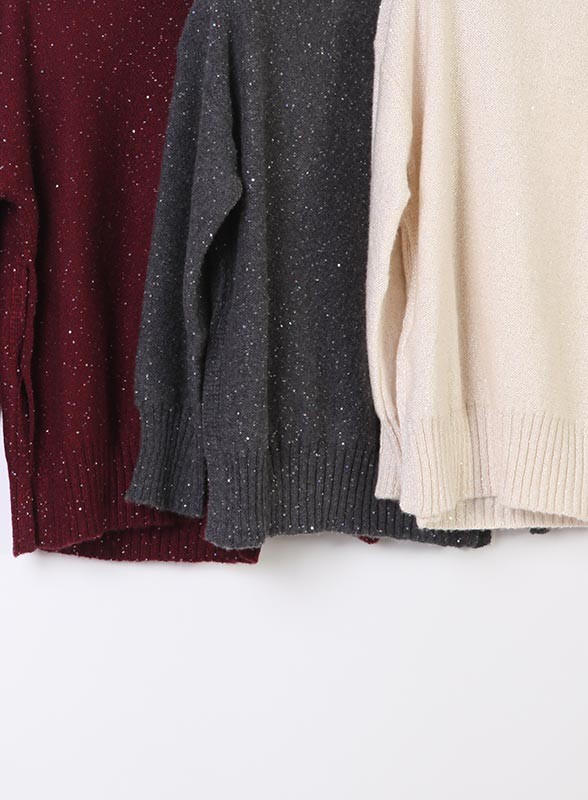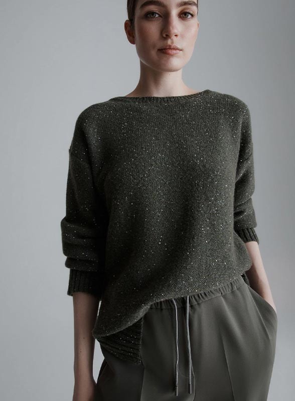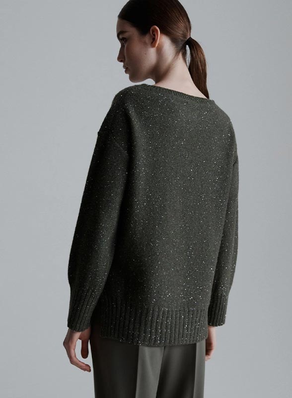 Maglia firmata MARELLA, parte della collezione MARELLA MONOCHROME, realizzata in misto lana e cashmere con paillette per un tocco sofisticato. Il fit è dritto, lo scollo è a giro e le maniche lunghe con spalla scesa rendono il capo elegante e comodo. Sui fianchi sono presenti spacchi alti fermati da bottoncini interni, mentre scollo e bordi sono lavorati a costine, garantendo un perfetto equilibrio tra stile e comfort.