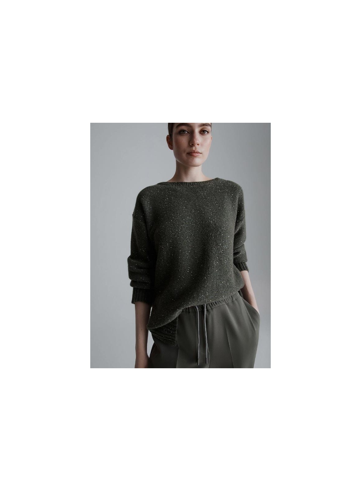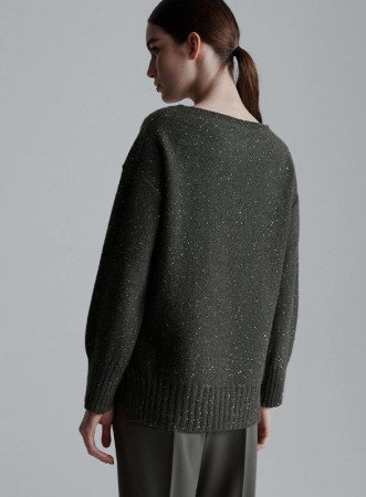 Maglia firmata MARELLA in misto lana e cashmere, fit dritto con paillette e spacchi laterali.