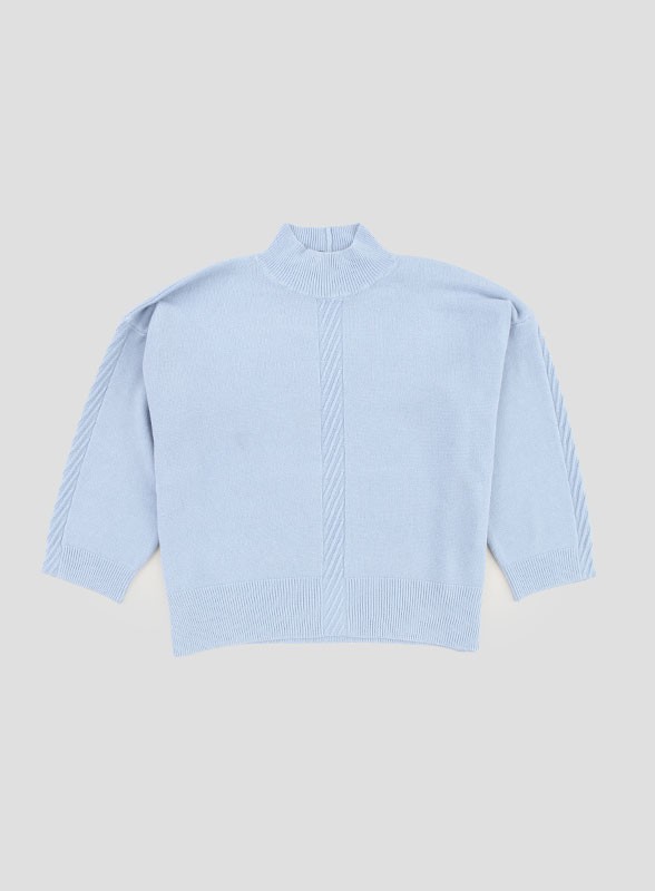Maglia firmata KAOS realizzata in morbida angora, caratterizzata da un mezzo collo e da una vestibilità regolare che garantisce comfort e stile in ogni occasione. Il design si distingue per la lavorazione rasata sul corpo principale, arricchita da dettagli a rilievo sul davanti e sulle maniche, che donano movimento e un tocco di eleganza contemporanea. Le maniche lunghe con giro sceso conferiscono un aspetto rilassato ma sofisticato, ideale per look versatili dal giorno alla sera.