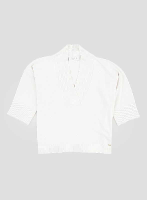 Cardigan firmato KAOS, con scollo a V e vestibilità over, lavorazione a costine per uno stile morbido e confortevole.