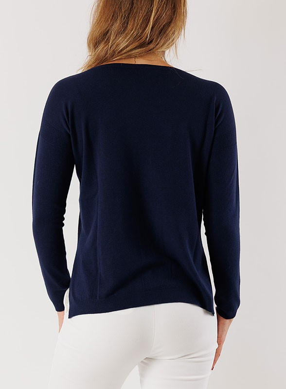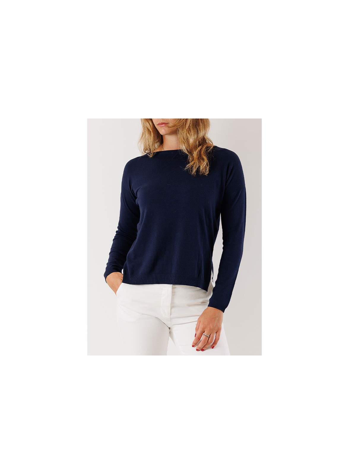 Maglia firmata Kontatto a maniche lunghe, morbida e stretch, con scollo a giro e spacchetti laterali, perfetta per la donna moderna.