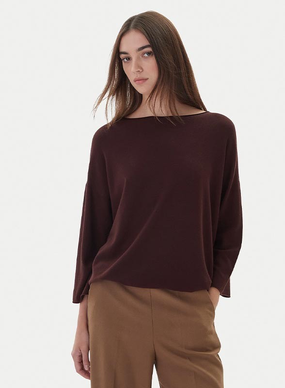 Maglia firmata Kontatto dal fit over e stretch, con maniche a 3/4 svasate e scollo rotondo, ideale per uno stile moderno e versatile.
