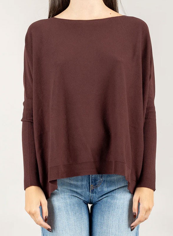 Maglia firmata Kontatto dal fit over e maniche al gomito, scollo a barca con profili a costine sottili, pratica e moderna.