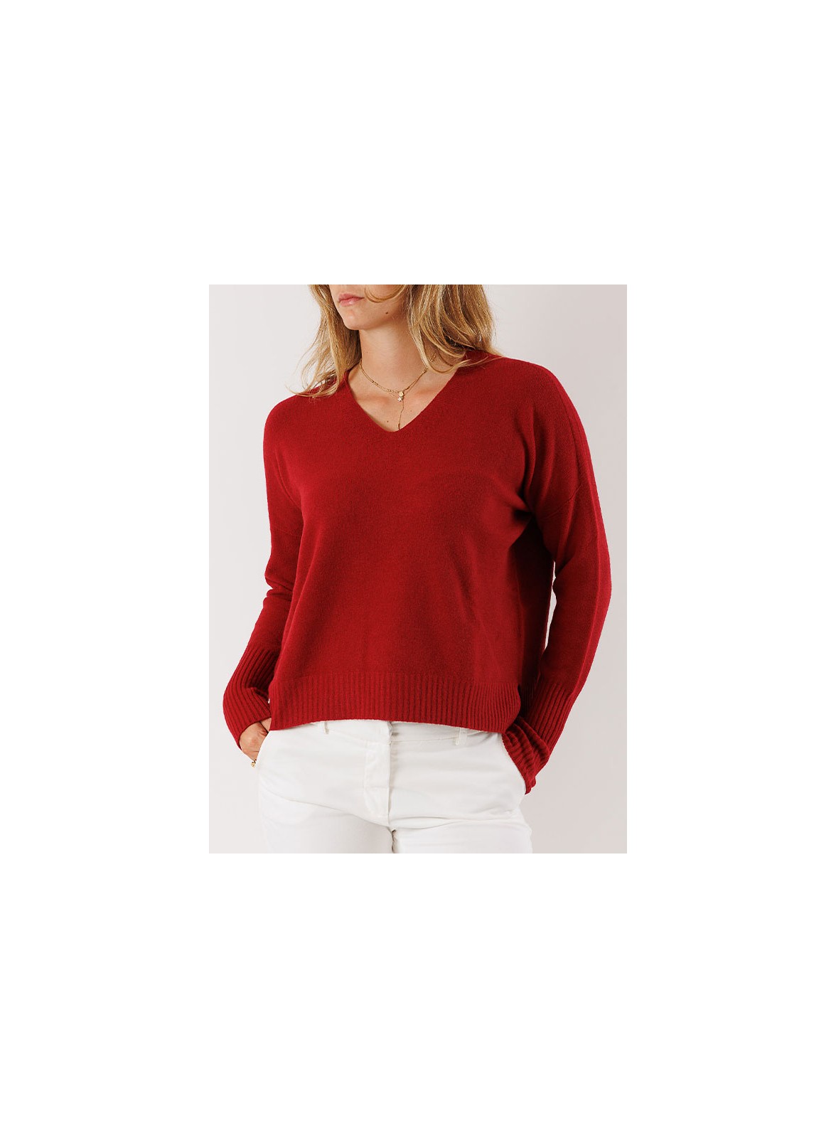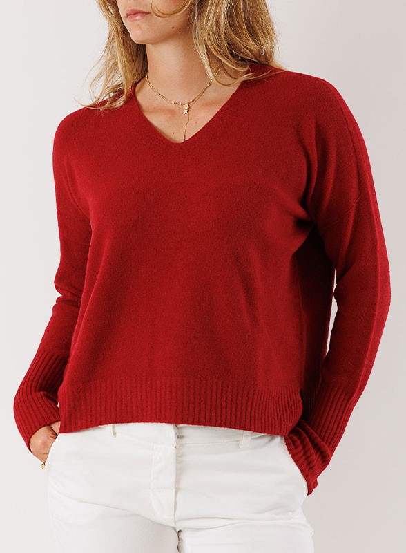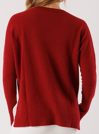 Questa maglia firmata KONTATTO è un capo versatile e contemporaneo, pensato per accompagnare la donna moderna in ogni occasione. Realizzata con un fit over che garantisce comodità e libertà di movimento, presenta un elegante scollo a V e maniche lunghe con taglio spalla scesa. I profili a costine sottili aggiungono un tocco raffinato, rendendola ideale da indossare sia in abbinamenti casual che in look più ricercati.