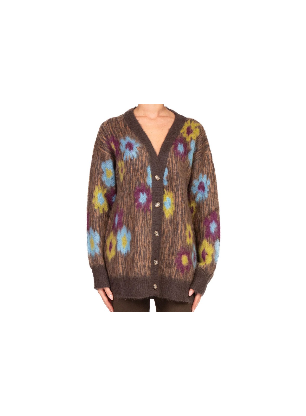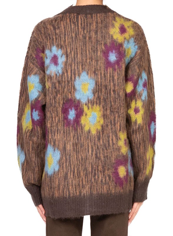 Il cardigan over firmato KONTATTO è un capo raffinato e femminile, pensato per completare con eleganza e comfort ogni look. Realizzato in soffice mohair, presenta un delicato motivo floreale che dona un tocco romantico e sofisticato al guardaroba. Lo scollo a V sottolinea delicatamente la silhouette, mentre la vestibilità ampia rende il capo versatile e confortevole, perfetto da abbinare sia ad abiti che a jeans per creare outfit eleganti e avvolgenti.