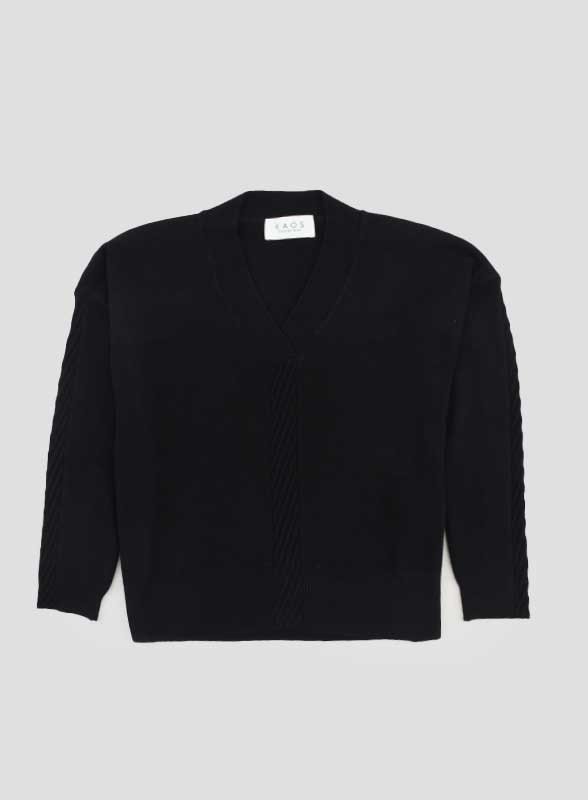 Maglia over firmata KAOS con scollo a V e maniche lunghe. Stile moderno e giovanile per un look casual ed elegante.