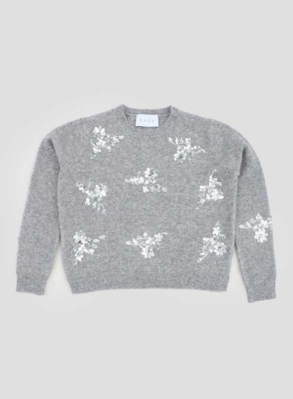 Questa maglia firmata KAOS è un capo versatile e raffinato, ideale per completare look casual chic con un tocco luminoso. Il modello presenta un girocollo classico, arricchito da applicazioni in paillettes sul davanti che donano movimento e brillantezza. Le maniche lunghe hanno un giro sceso e sono rifinite con lavorazione a costine sui polsini, garantendo comfort e vestibilità. Lo stile è reso più dinamico dagli spacchetti al fondo e dal fit over, perfetto per un indosso morbido e contemporaneo.