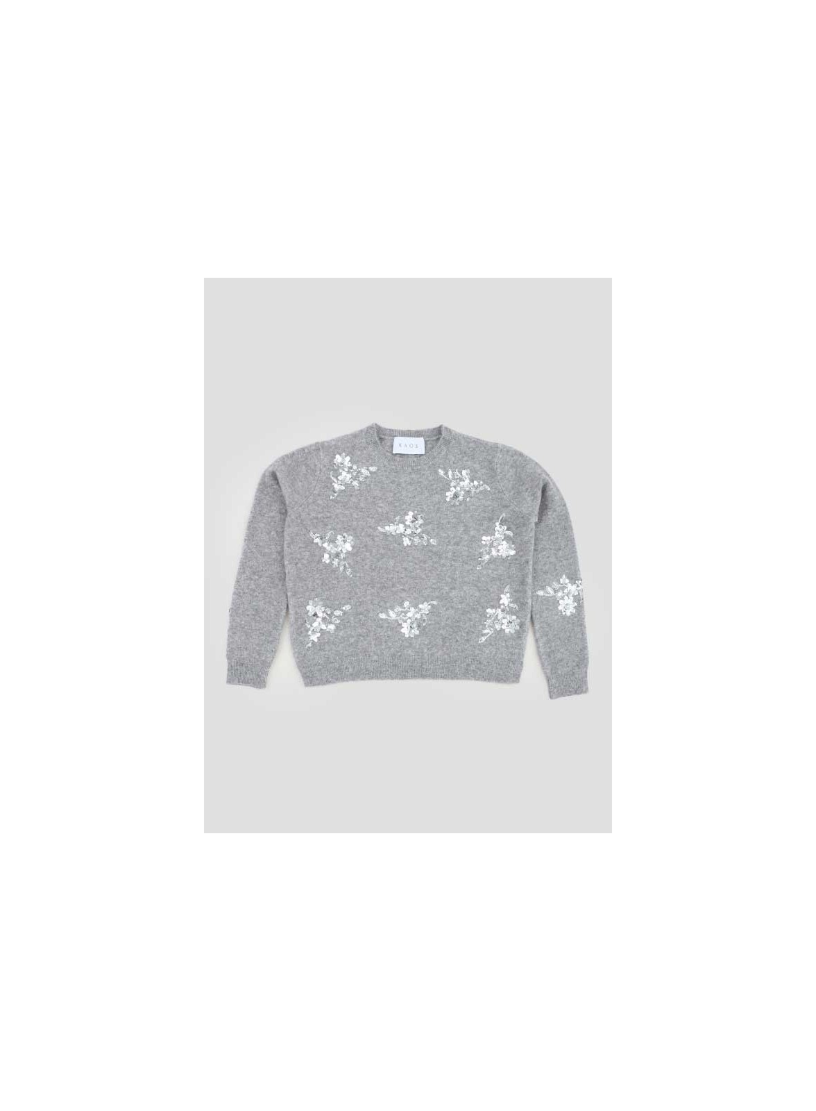 Maglia firmata KAOS in misto lana con paillettes, girocollo e fit over. Maniche lunghe a giro sceso e spacchetti al fondo.
