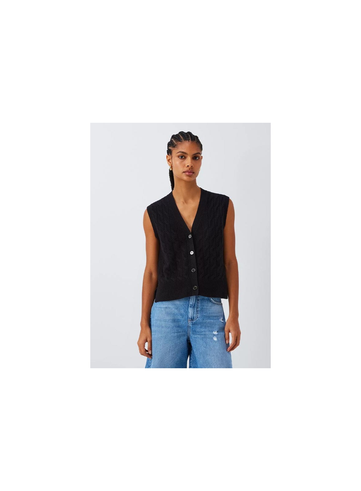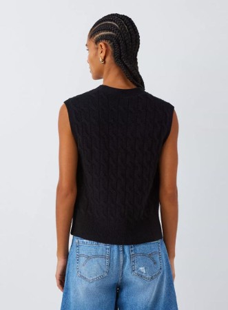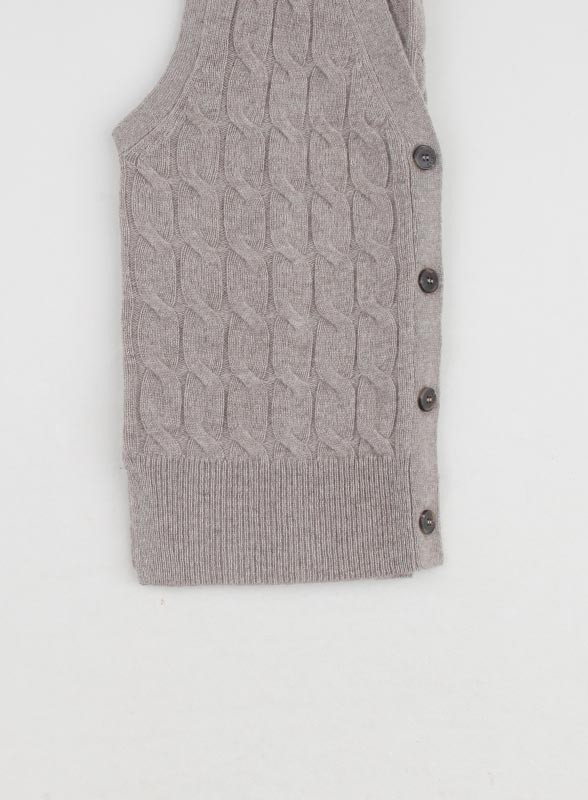 Gilet firmato MARELLA realizzato in un pregiato filato misto lana e cashmere, caratterizzato da un fit dritto e pulito che valorizza ogni silhouette. Il design presenta uno scollo a V elegante e una chiusura frontale con bottoni effetto corno personalizzati, che aggiungono un tocco distintivo al capo. I bordi lavorati a costine garantiscono una finitura curata e un comfort ottimale. Questo gilet si distingue per la sua versatilità: perfetto da indossare sopra una camicia per un look sofisticato o su una t-shirt per uno stile più casual ma sempre ricercato.