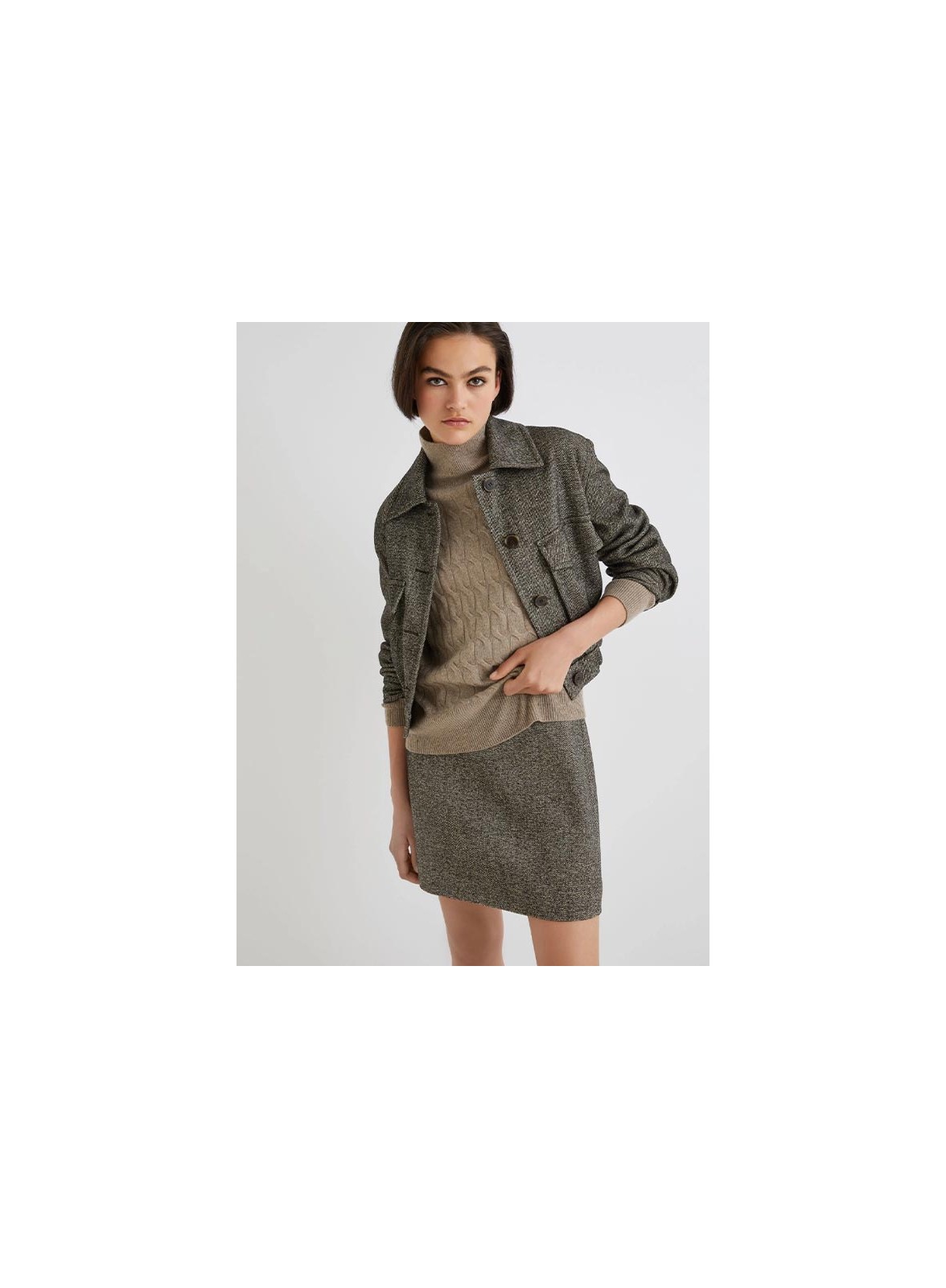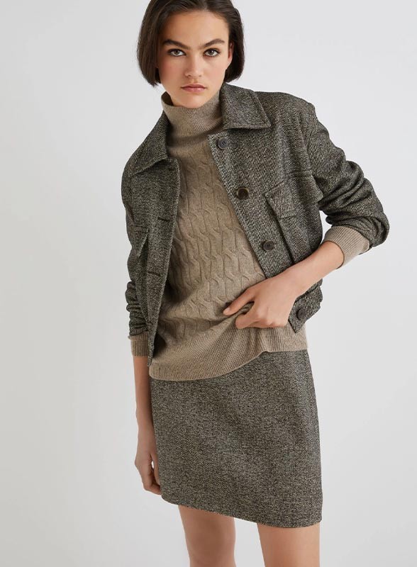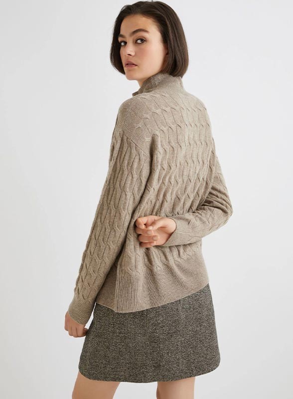 Maglia firmata MARELLA realizzata in un pregiato filato di lana e cashmere. Il modello presenta un collo a lupetto e una spalla leggermente scesa, per un fit regolare che valorizza la silhouette mantenendo un comfort assoluto. La lavorazione a trecce dona al capo un aspetto raffinato e contemporaneo, rendendolo perfetto da abbinare sia a look casual che più eleganti. Il fondo e i polsi lavorati a costine aggiungono un dettaglio di stile e garantiscono una vestibilità ottimale.