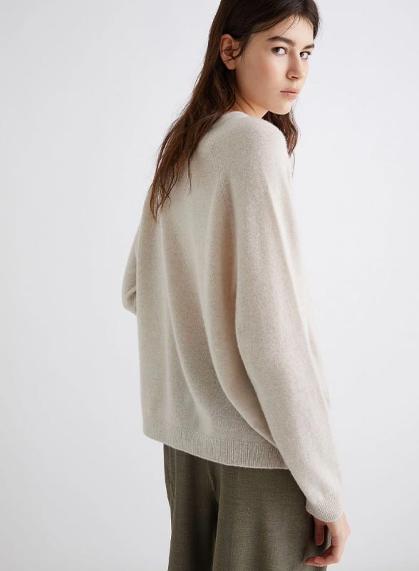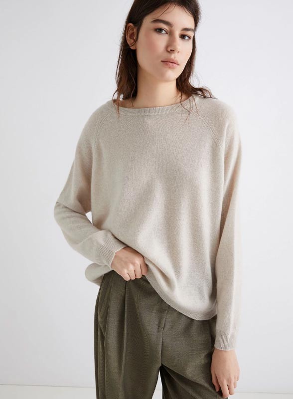 Maglia firmata MARELLA in puro cashmere, dal volume ampio e taglio raglan. Eleganza e comfort senza tempo, perfetta per ogni look.