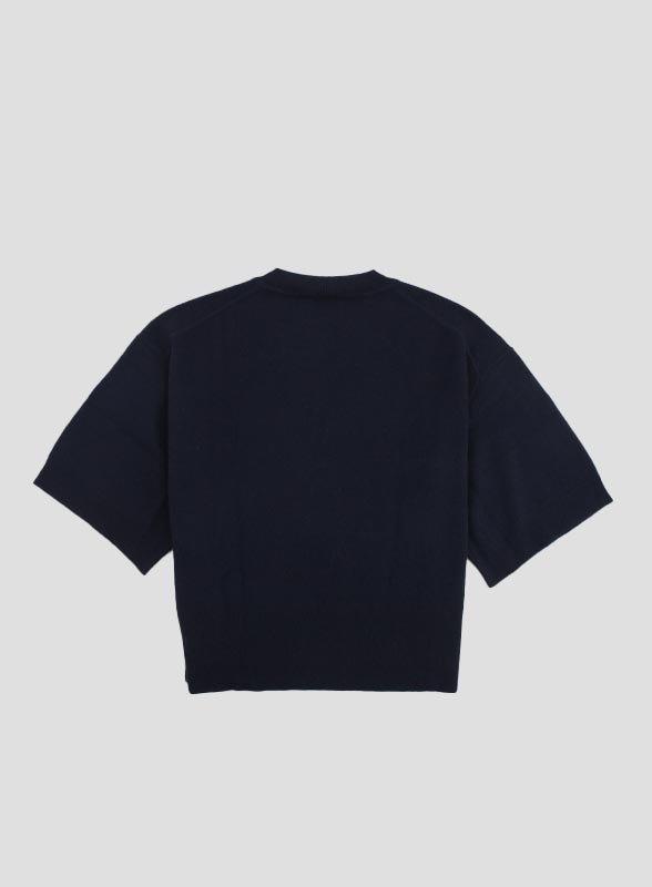 Maglia girocollo con maniche a tre quarti svasate, scollo rotondo e dettagli rotolino. Comfort e stile firmati Kontatto. Della nuova collezione.