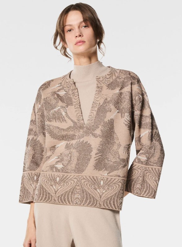 Maglia firmata NENETTE in morbido jacquard dal motivo giapponese, un capo elegante e raffinato per un look casual-chic.