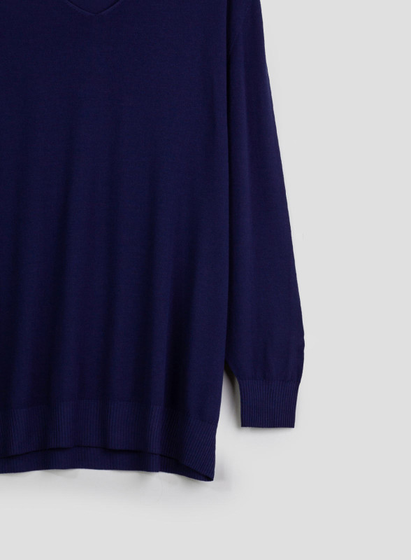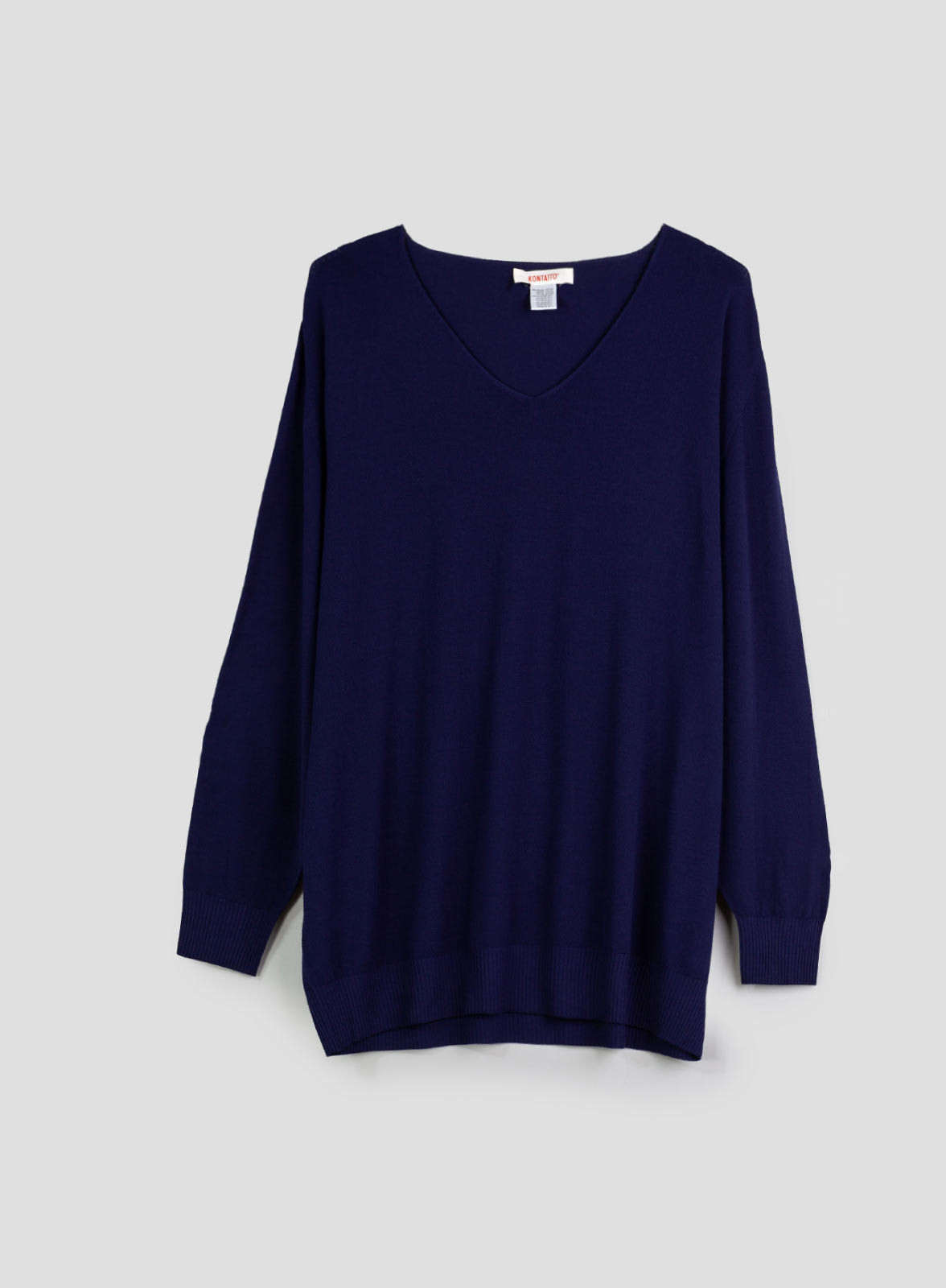 Maglia over a maniche lunghe con scollo a V, profili a costine sottili e taglio spalla scesa. Fit over e stretch. L'abbigliamento firmato Kontatto è pensato per soddisfare ogni esigenza della donna moderna. Al passo con le tendenze, il brand italiano propone capi pratici e giovanili.
