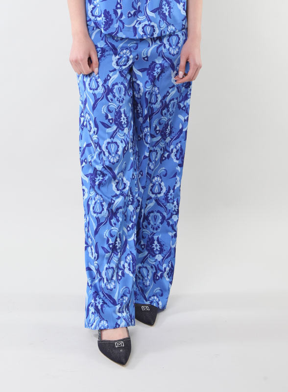 Pantalone firmato Iblues: fantasia ampia, linea morbida, perfetto per outfit casual chic.