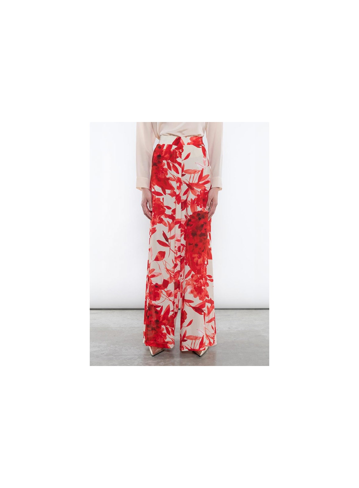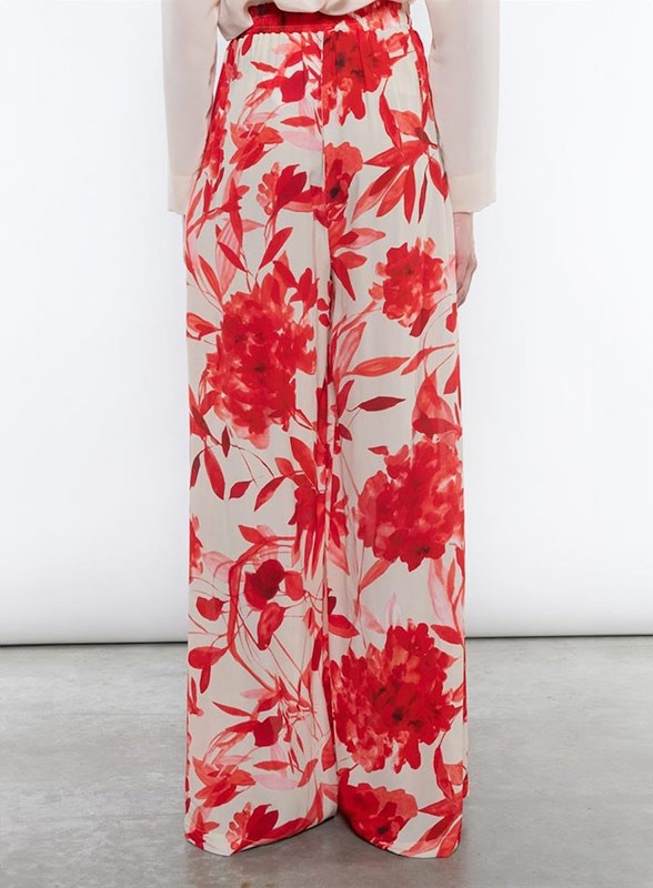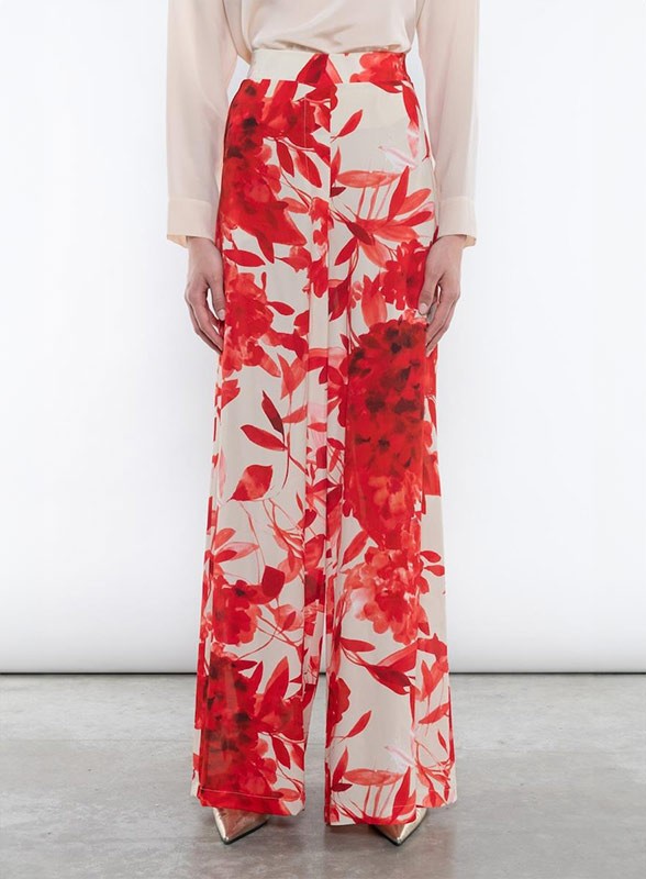 Pantalone firmato KAOS in misto lino, a palazzo con gamba ampia e pieghe frontali. Eleganza firmata per ogni occasione.