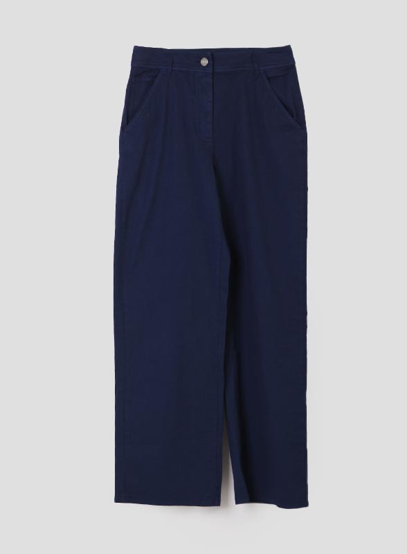 Pantalone a gamba larga firmato PENNYBLACK, con chiusura a zip e bottone a contrasto. Morbido e raffinato, perfetto per ogni occasione.