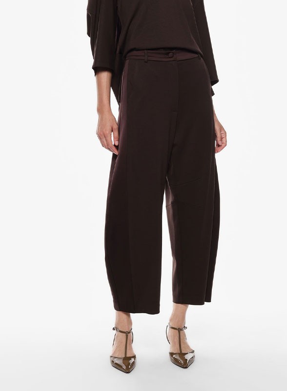 Pantalone ampio in twill crinkle firmato MARELLA, linea morbida e chiusura laterale nascosta, eleganza contemporanea.