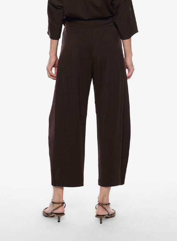 Pantalone palazzo firmato KONTATTO, elegante e moderno in tessuto crepe, con elastico posteriore per una vestibilità comoda.