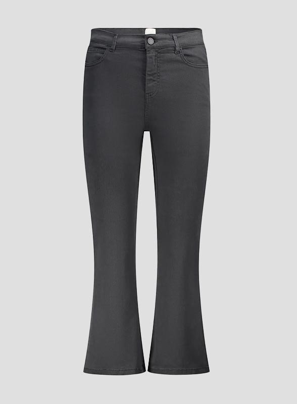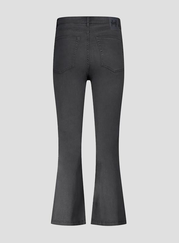 Pantalone firmato MARELLA in bull stretch, linea flare cropped, elegante e versatile per look femminili e contemporanei.